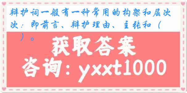 1. 辩护词一般有一种常用的构架和层次:即前言、辩护理由、主张和( )。 2. 一般情况下,当利率增加时,投机动机所引起的货币需求将()。 3. 在不存在勾结时,寡头决定产量是根据( )。