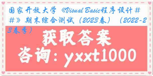 国家开放大学《Visual Basic程序设计#》期末综合测试(2023春)(2022-2023春季)相关练习题: