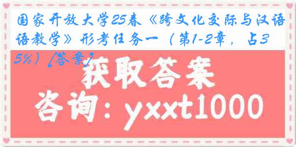 国家开放大学25春《跨文化交际与汉语教学》形考任务一(第1-2章,占35%)[答案]相关练习题: