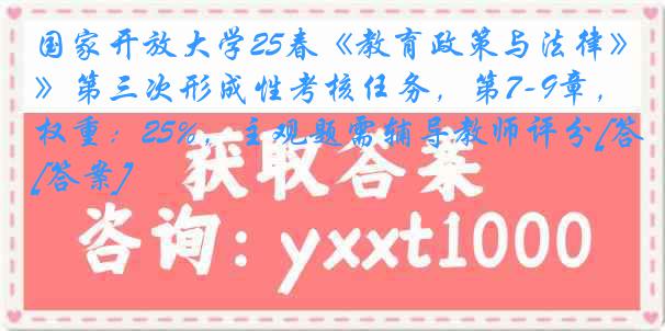 国家开放大学25春《教育政策与法律》第三次形成性考核任务,第7-9章,权重:25%,主观题需辅导教师评分[答案]