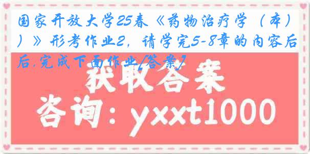 国家开放大学25春《药物治疗学(本)》形考作业2,请学完5-8章的内容后,完成下面作业[答案]相关练习题: