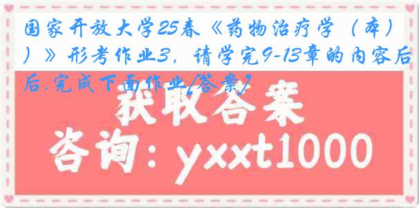 国家开放大学25春《药物治疗学(本)》形考作业3,请学完9-13章的内容后,完成下面作业[答案]相关练习题:
